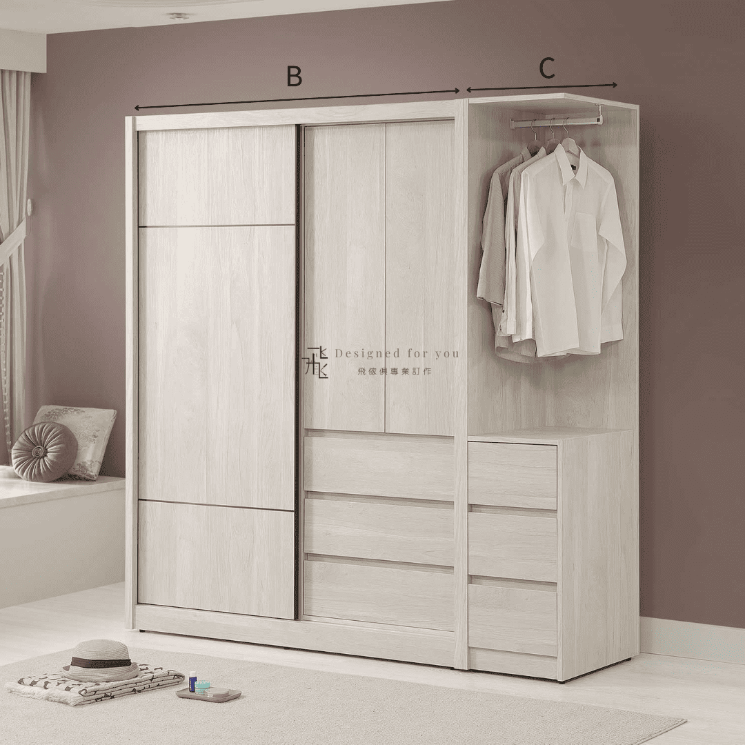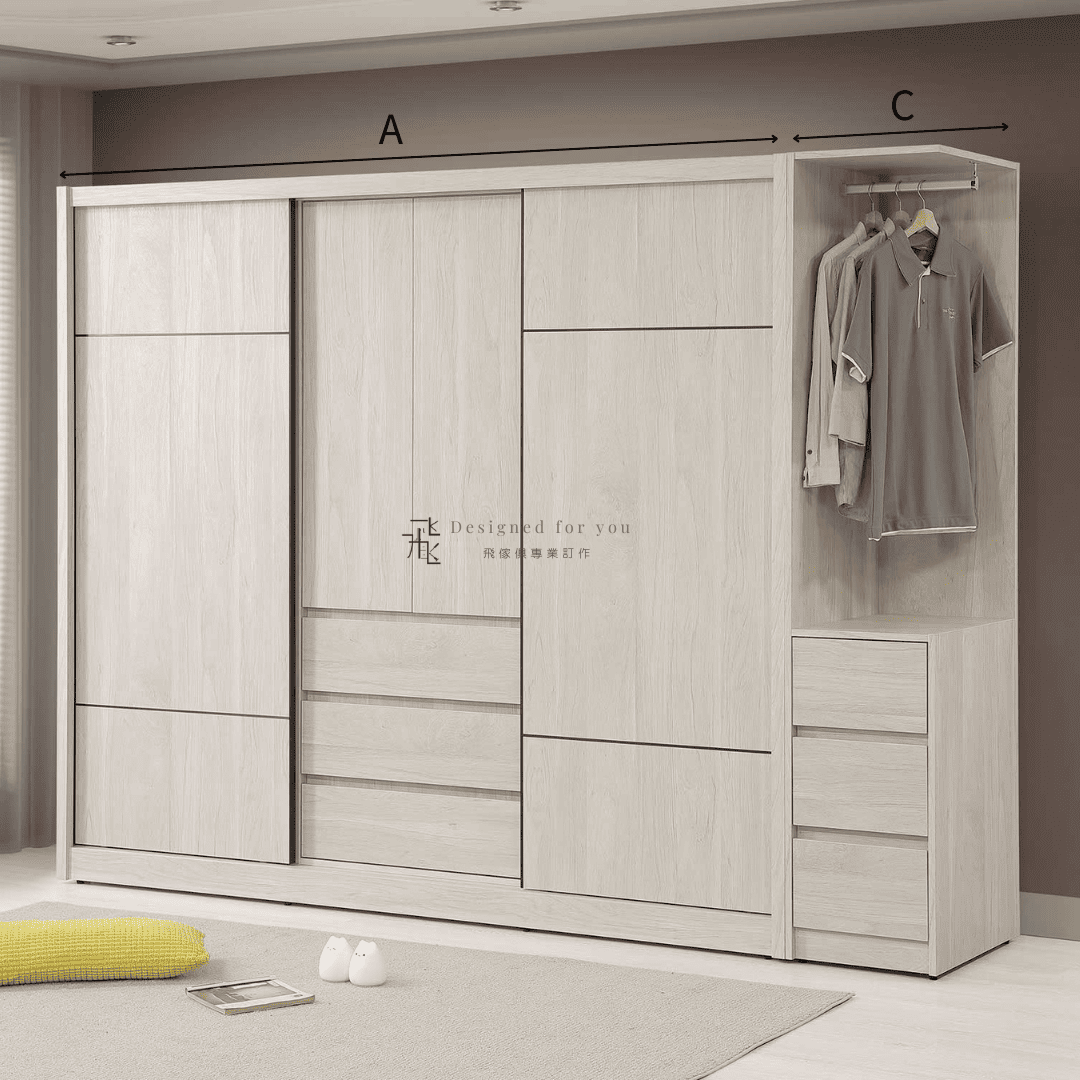 A 7尺推門衣櫃 寬226.5x深60x高202.5 CM