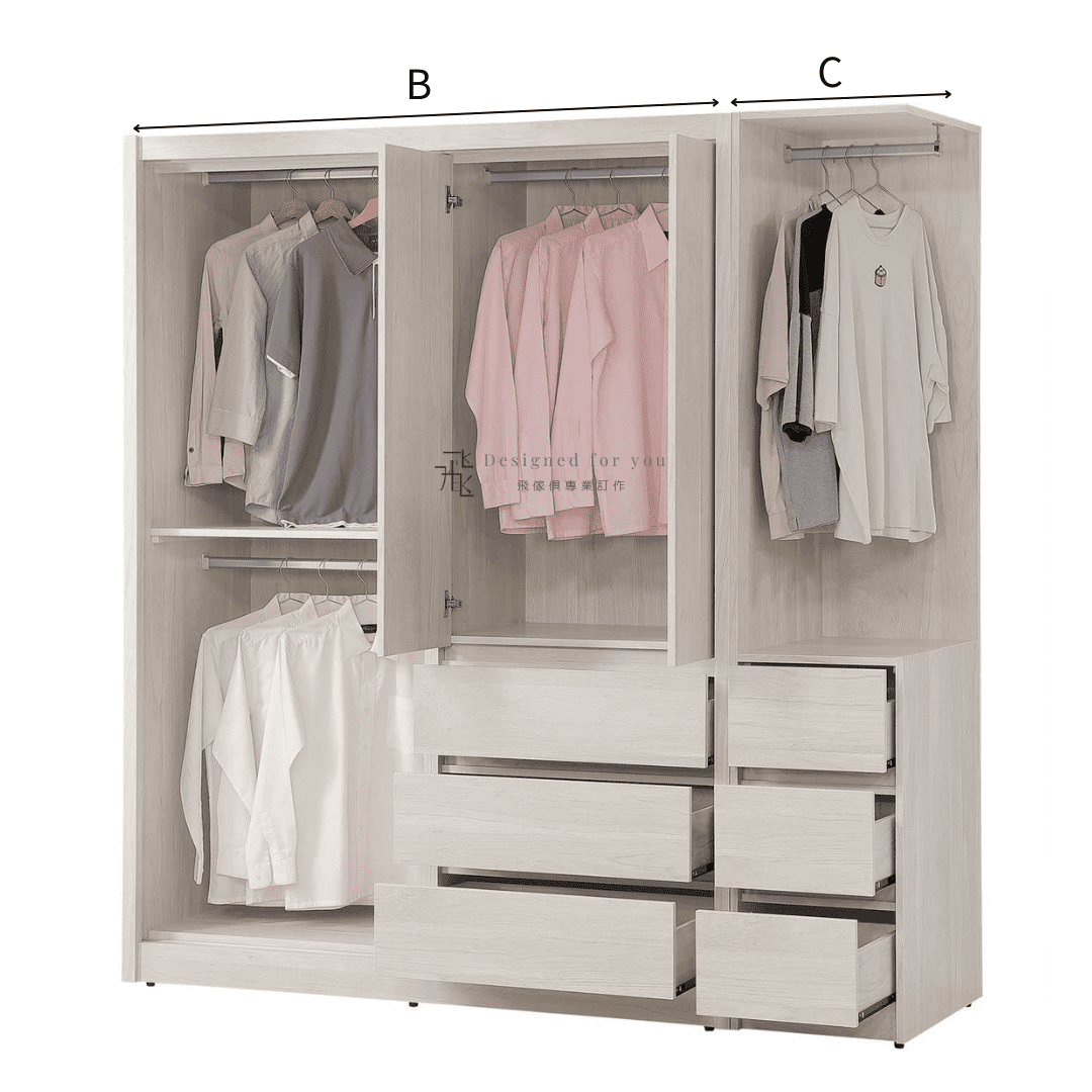 B 5尺推門衣櫃 寬151x深60x高202.5 CM