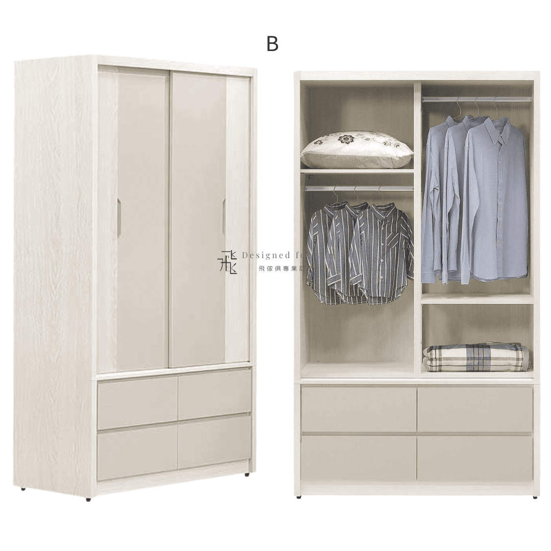 B 四抽推門衣櫃 寬120x深60x高209 CM