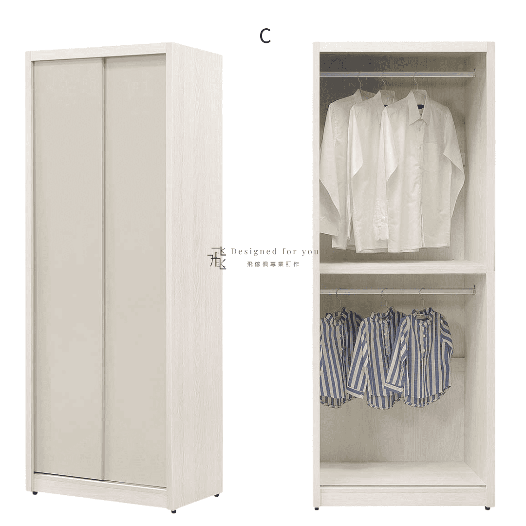 雙吊推門衣櫃 寬79x深60x高209 CM