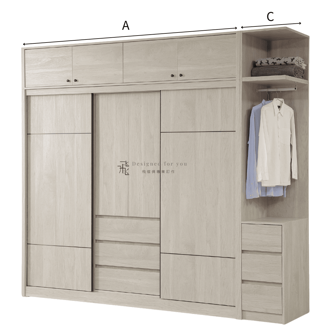 A 7尺推門衣櫃 寬226.5x深60x高242.5 CM