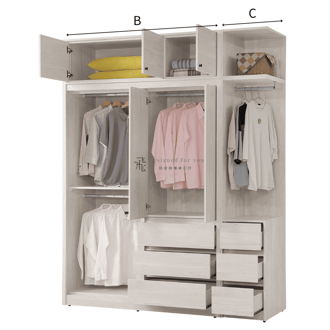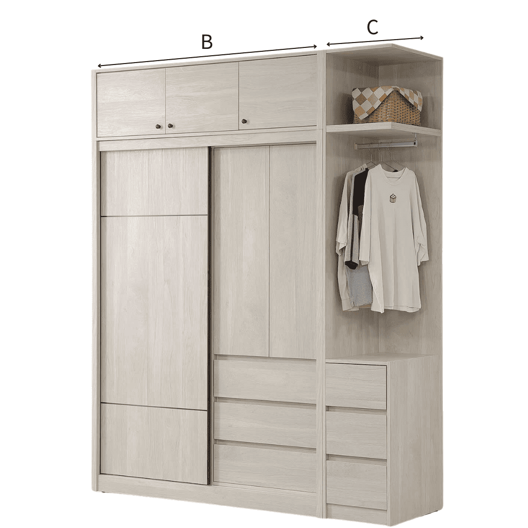 B 5尺推門衣櫃 寬151x深60x高242.5 CM