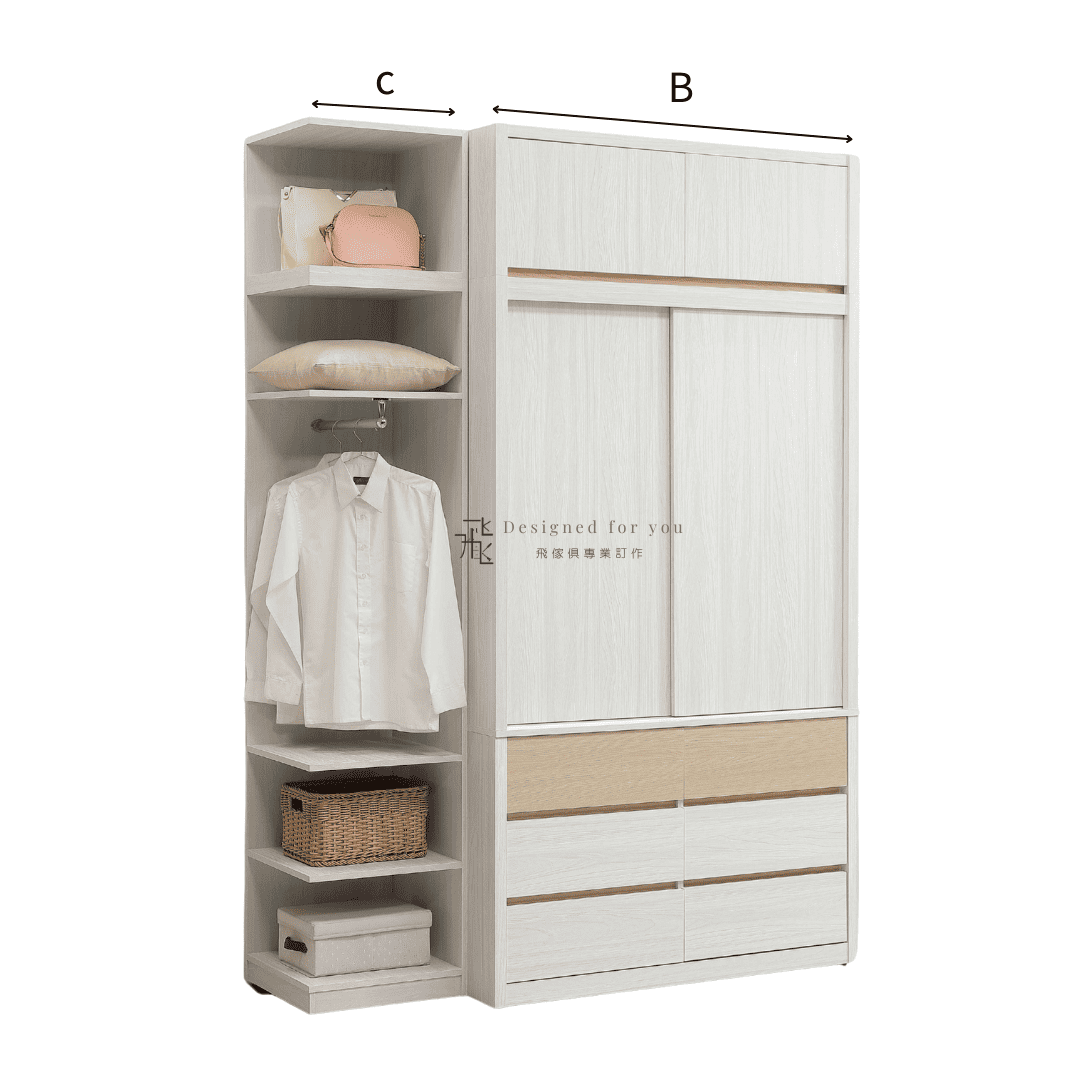 B 4尺推門衣櫃 寬118x深60.5x高237 CM